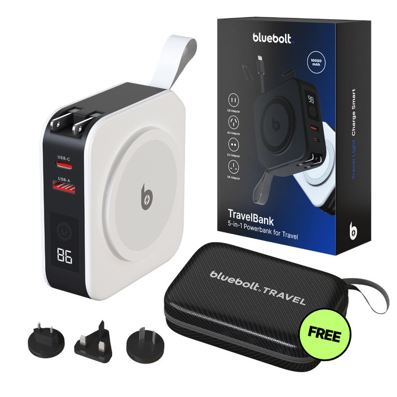 TravelBank 5-in-1 Wall Charger with Wireless Charging Pad and Power Bank