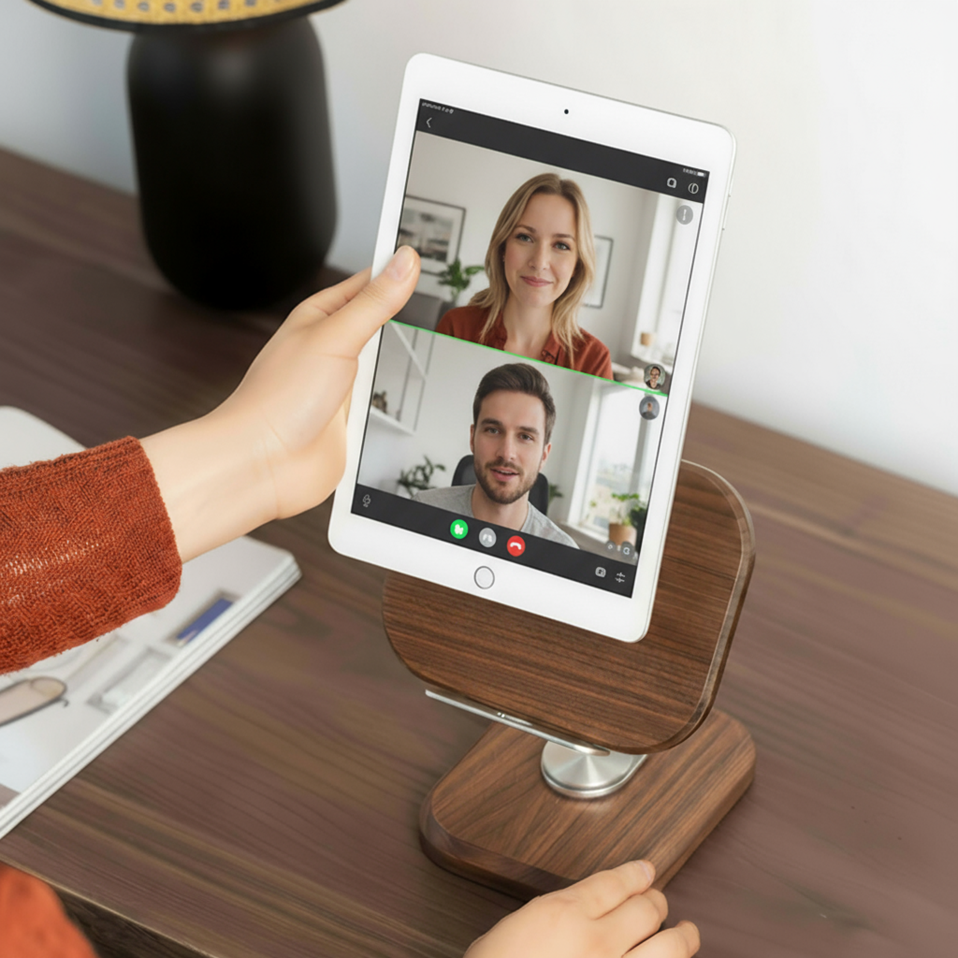That’s why we designed the Wooden Phone & Tablet Stand, a solid walnut and aluminum holder that blends strength with timeless style. Not just a stand, but one you’ll be proud to keep on display.